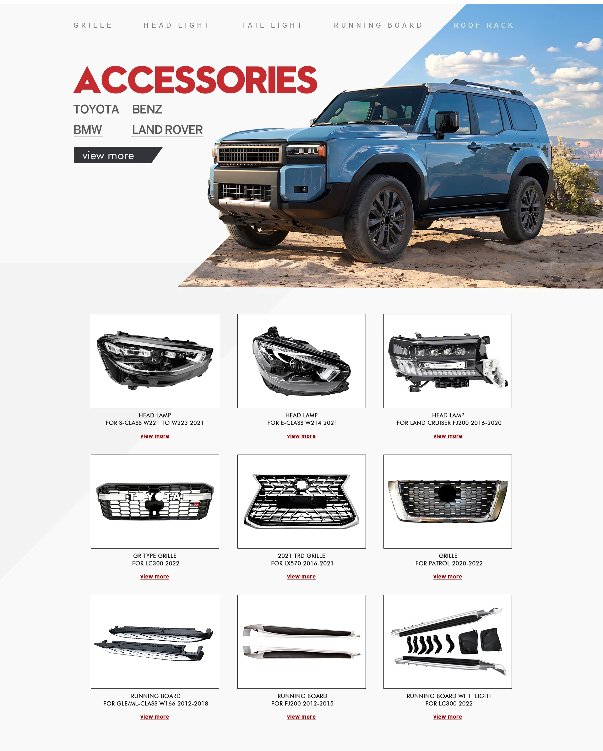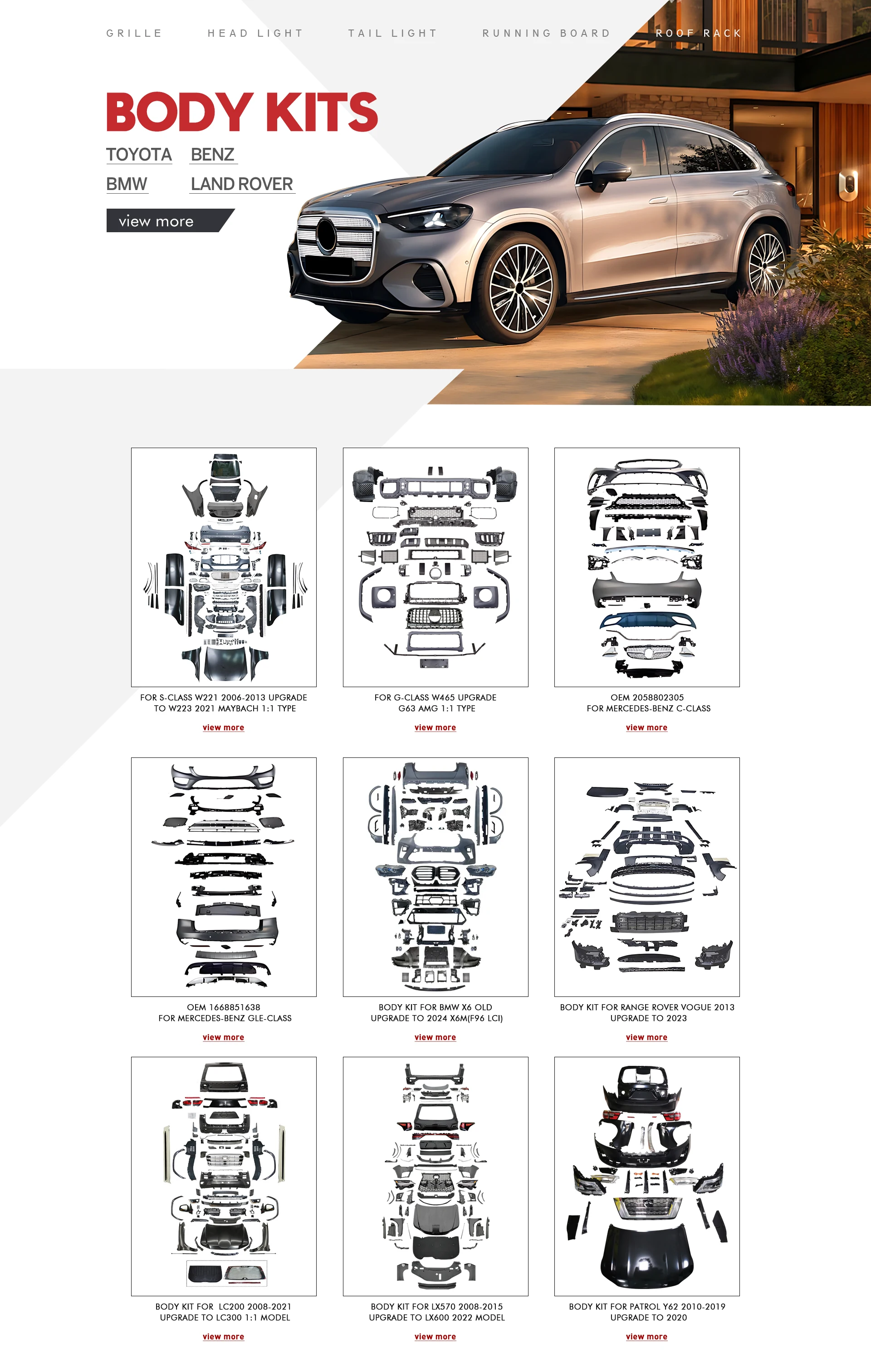 Produk utama: Body Kit, lampu mobil, papan lari, kisi, cermin samping